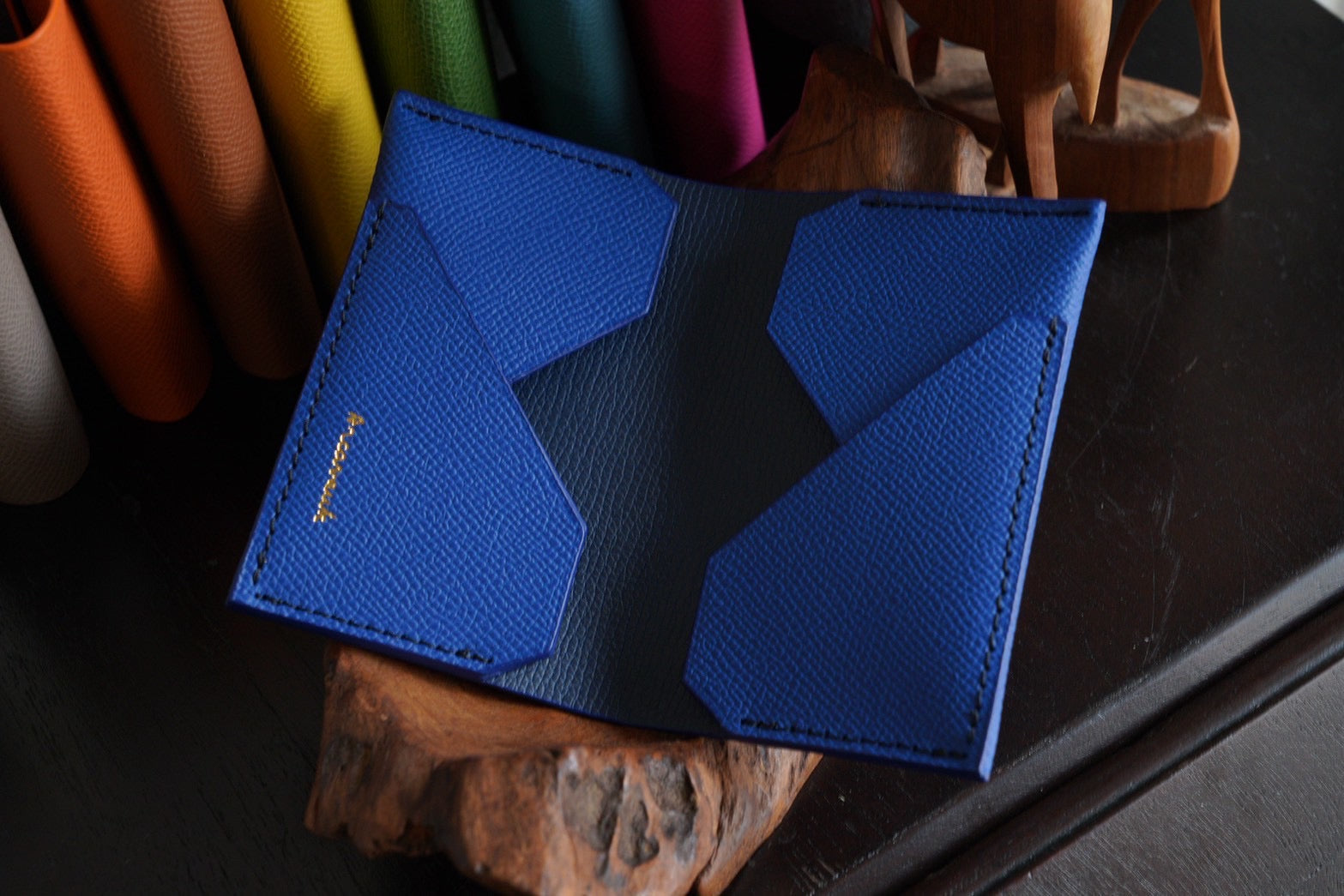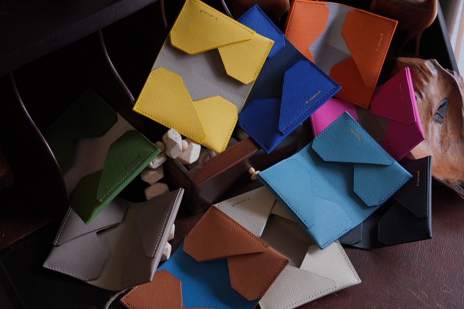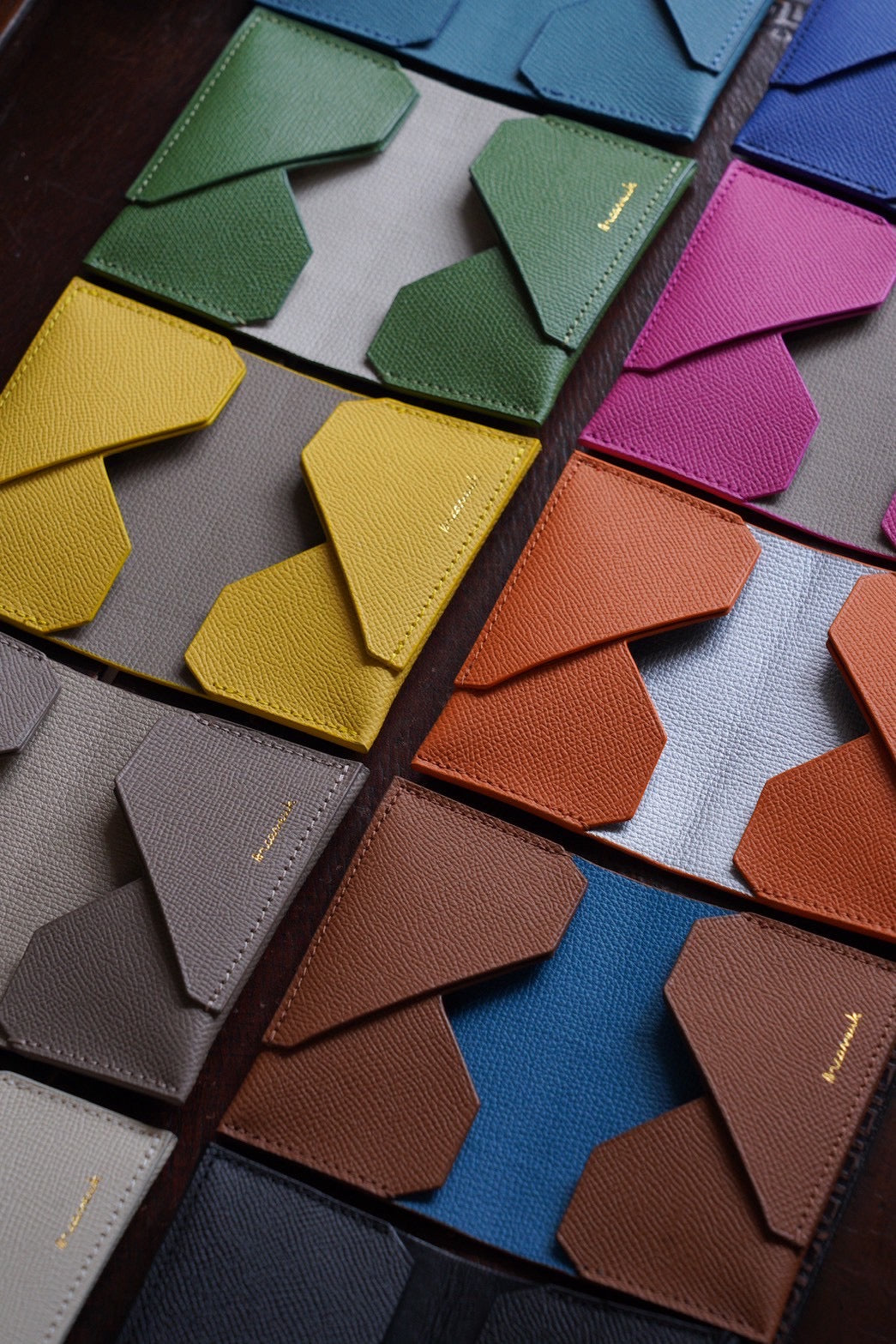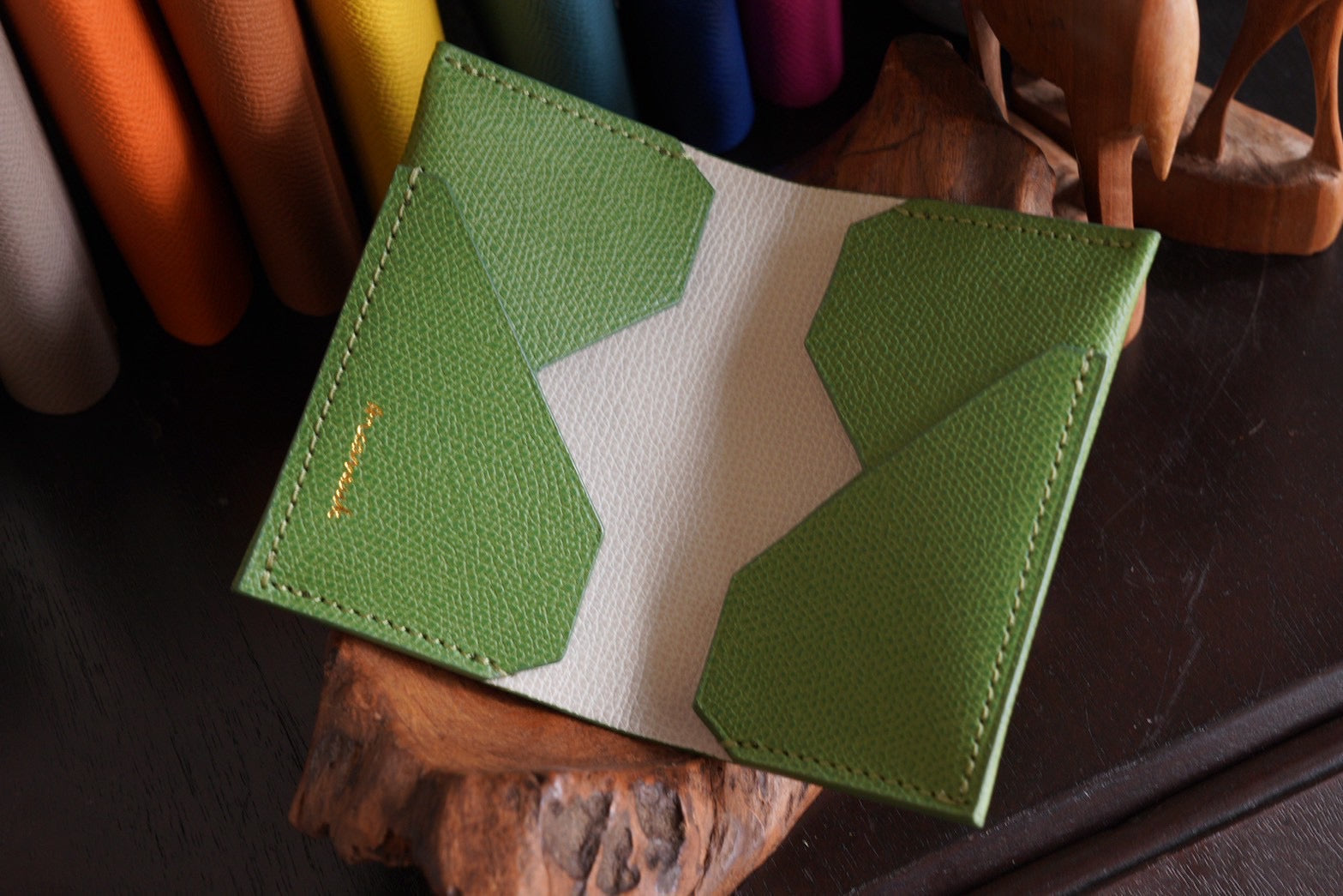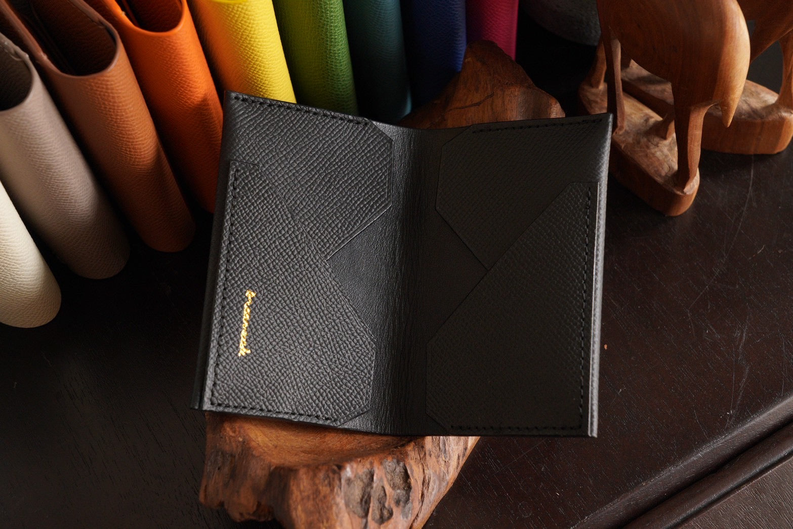 扉を開くと左右対称に配置されたカードポケットがあり、それぞれ名刺が20〜30枚程度収納可能です。片方には自分の名刺を、片方には相手方に名刺を。使い分けも非常に便利で、名刺以外にもクレジットや定期券なども収納できるゆとりがあり、持つ人の日常にフィットします。表面にはフレンチカーフレザーを採用しており、高級感ある見た目に極上の触り心地を演出しております。内装には発色の鮮やかなイタリアンレザーを差し込み、Arcaneukらしいカラーバランスで持ち主の個性を大切にします。