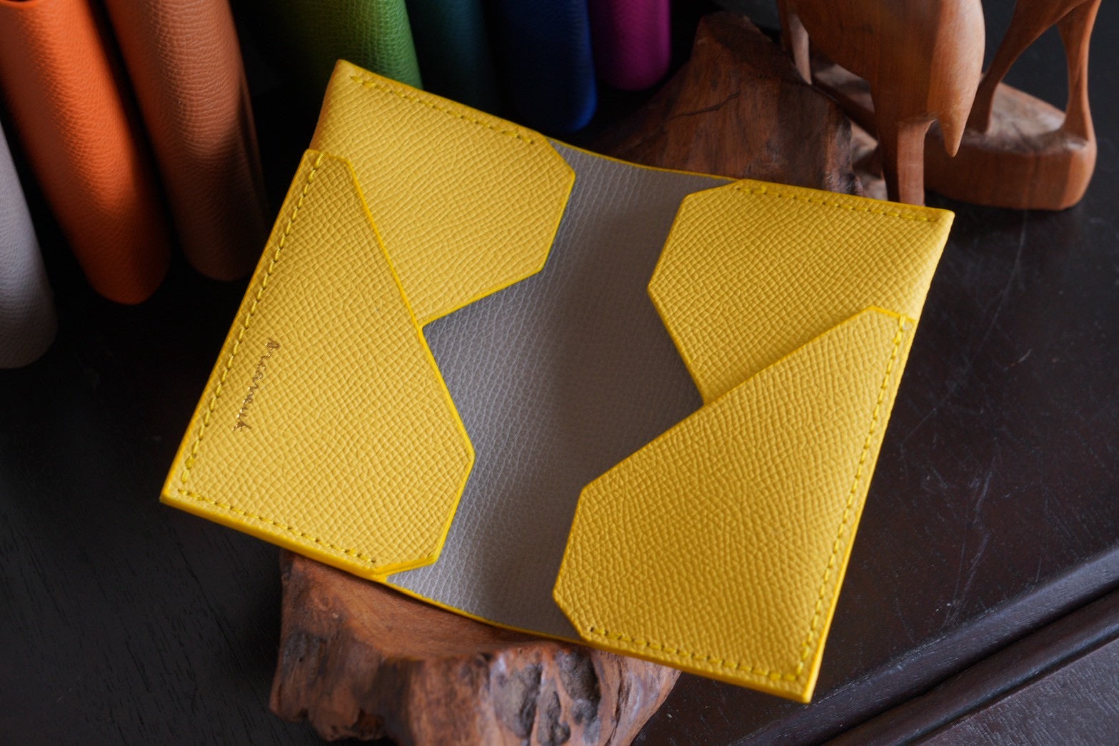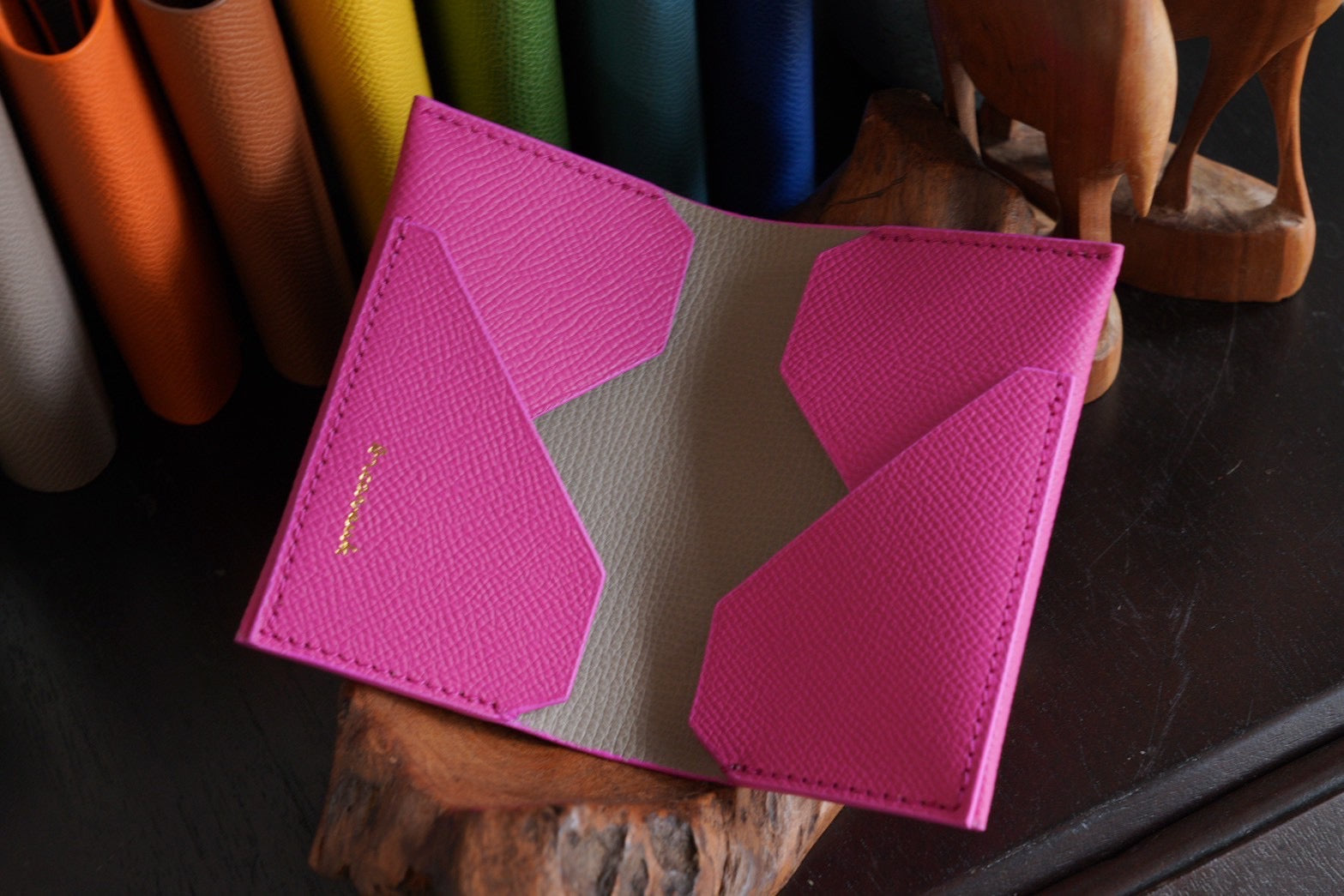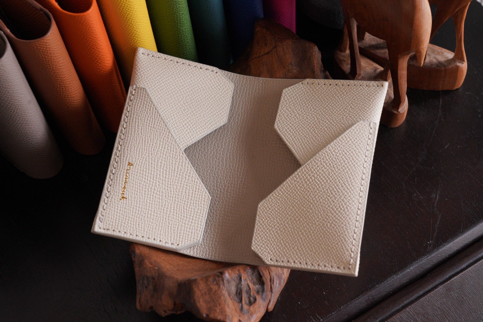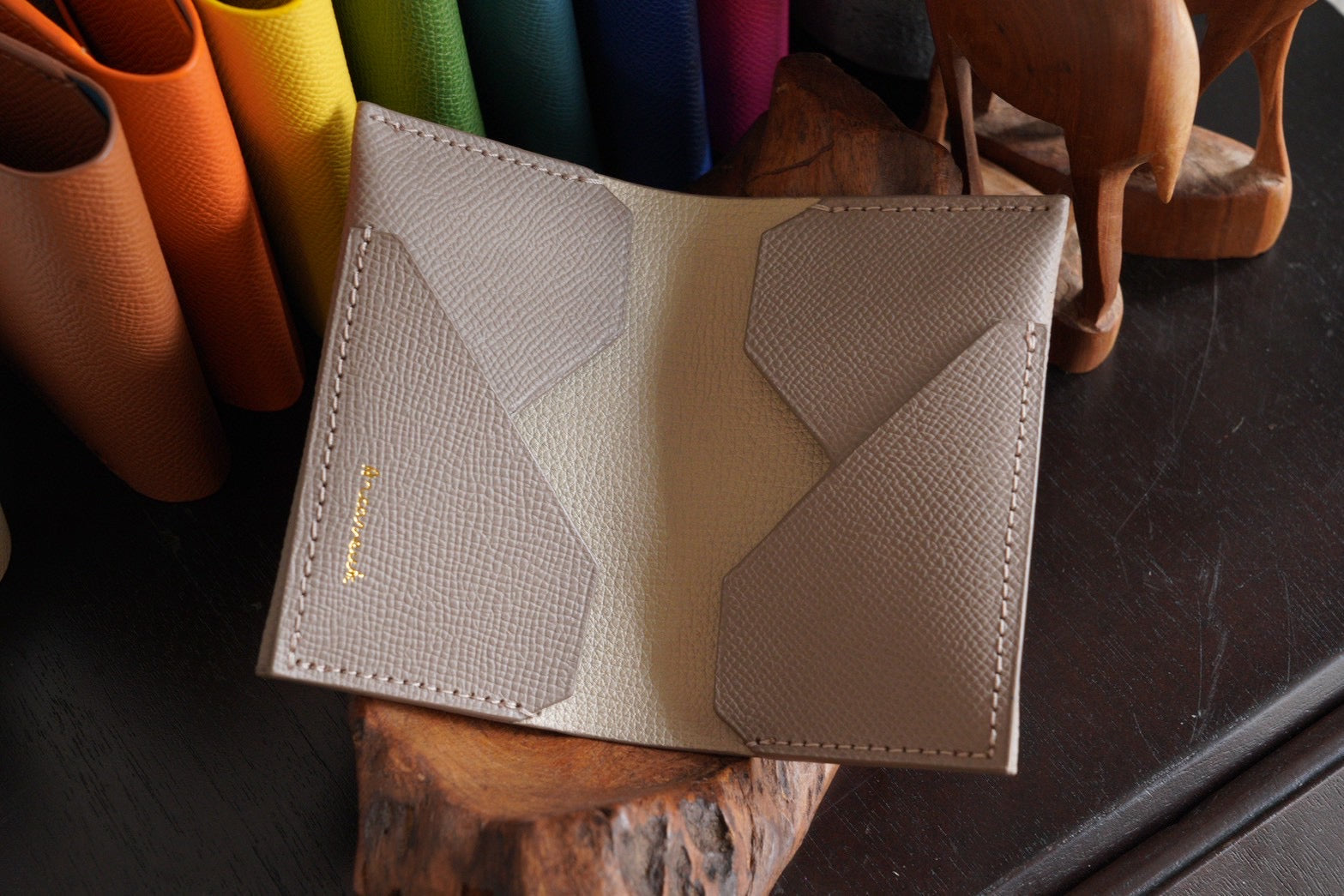 扉を開くと左右対称に配置されたカードポケットがあり、それぞれ名刺が20〜30枚程度収納可能です。片方には自分の名刺を、片方には相手方に名刺を。使い分けも非常に便利で、名刺以外にもクレジットや定期券なども収納できるゆとりがあり、持つ人の日常にフィットします。表面にはフレンチカーフレザーを採用しており、高級感ある見た目に極上の触り心地を演出しております。内装には発色の鮮やかなイタリアンレザーを差し込み、Arcaneukらしいカラーバランスで持ち主の個性を大切にします。